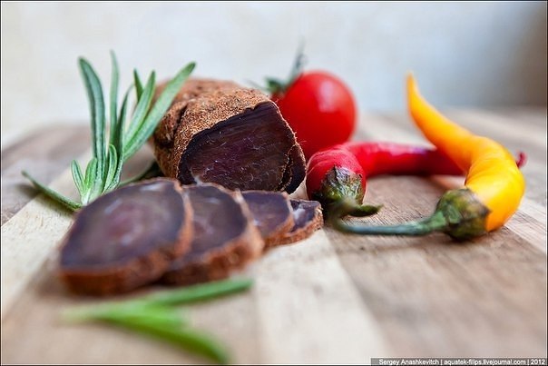 8. И вот, неделю спустя, можно снимать марлевую пижаму с брезаолы и, нарезав тонкими ломтиками, наслаждаться вкусным продуктом по итальянскому рецепту