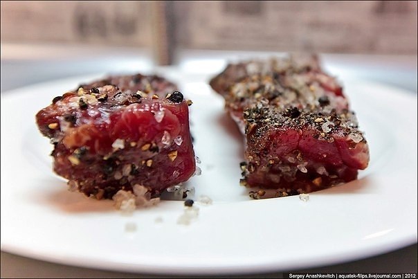 4. После чего хорошо моем его от соляно-перечной смеси и высушиваем бумажными полотенцами или чистой хлопчатобумажной салфеткой. Важно, чтобы мясо было сухим.