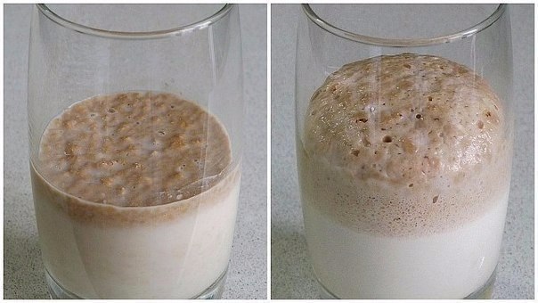 1. Приготовить тесто.Для этого в чашке смешать 0,5ст теплой воды (или молока) + 1ст.л. муки + 1ст.л сахара + дрожжи. Оставить в теплом месте на 7-10минут, чтобы опара поднялась шапочкой.