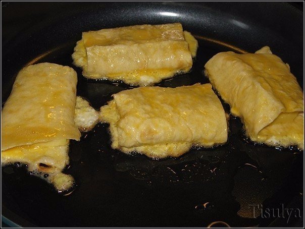 Сыр внутри плавится, а снаружи получается аппетитный румяный омлет - очень вкусно!!!