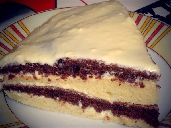 Лёгкий и вкусный тортик на кефире Ингредиенты: Тесто: -3 яйца, -1 стакан кефира, -1 стакан сах.песка, -0.5 ч.л. соды(погасить), -2 стакана муки. ...