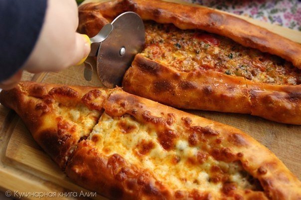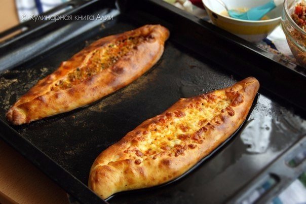 Пиде - это турецкий фаст-фуд. Как давно я хотела его сделать! Иду по улице, смотрю на них и так хочется попробовать... А еще больше хотелось самой научиться их делать... И я научилась!!! Yahoo! А тесто такое интересное, никогда такое не делала... В общем, всем советую попробовать...