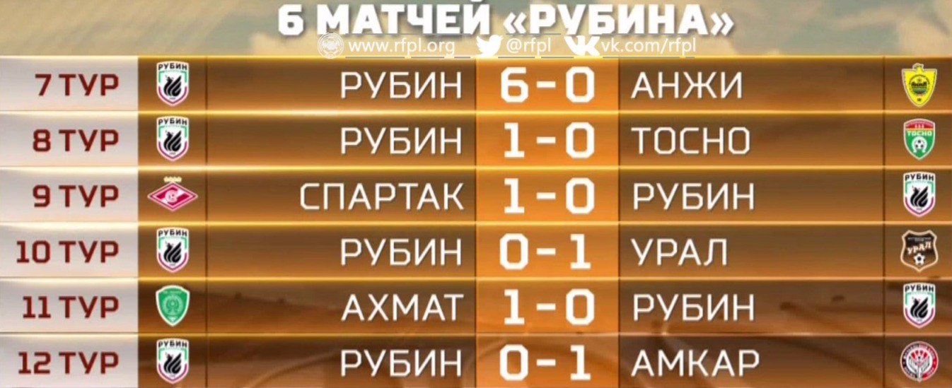 Последние 6 матчей "Рубина" #РФПЛ. 13-й тур. #РостовРубин 0:0 Прямая трансляция: #НашФутбол HD