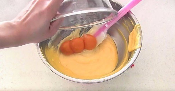 7. Достаньте из холодильника белки, взбейте их венчиком и добавьте в получившуюся массу.
