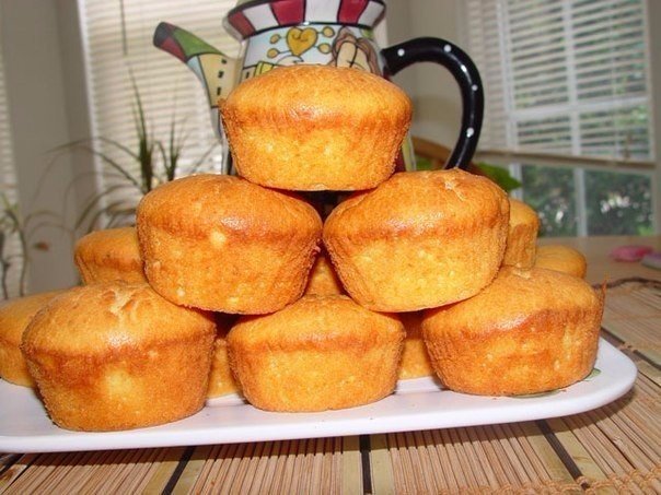 Смешиваем все ингридиенты до однородной массы. Сахара я всегда ложу чуть меньше, на этот раз тоже, но дело вкуса. Сливочного масла положила на глаз - просто зачепнула ложкой из масленки. Формы для кексов смазываем маслом и наполняем до половины. Выпекаем в разогретой духовке до готовности.