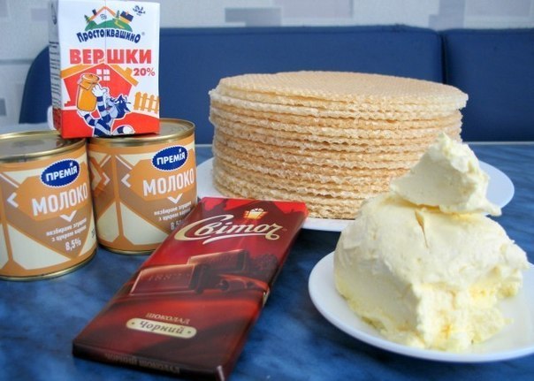 Вафельный торт со сгущенкой и шоколадом.