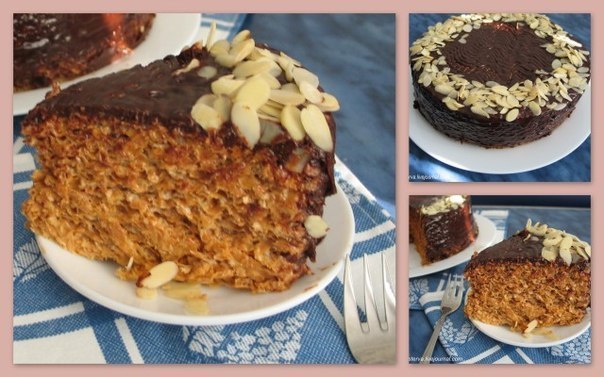 Шаг 2. Намазать коржи кремом. Приготовить глазурь (50 мл. сливок+50 гр. масла+100 гр.шоколада) и покрыть им коржи.